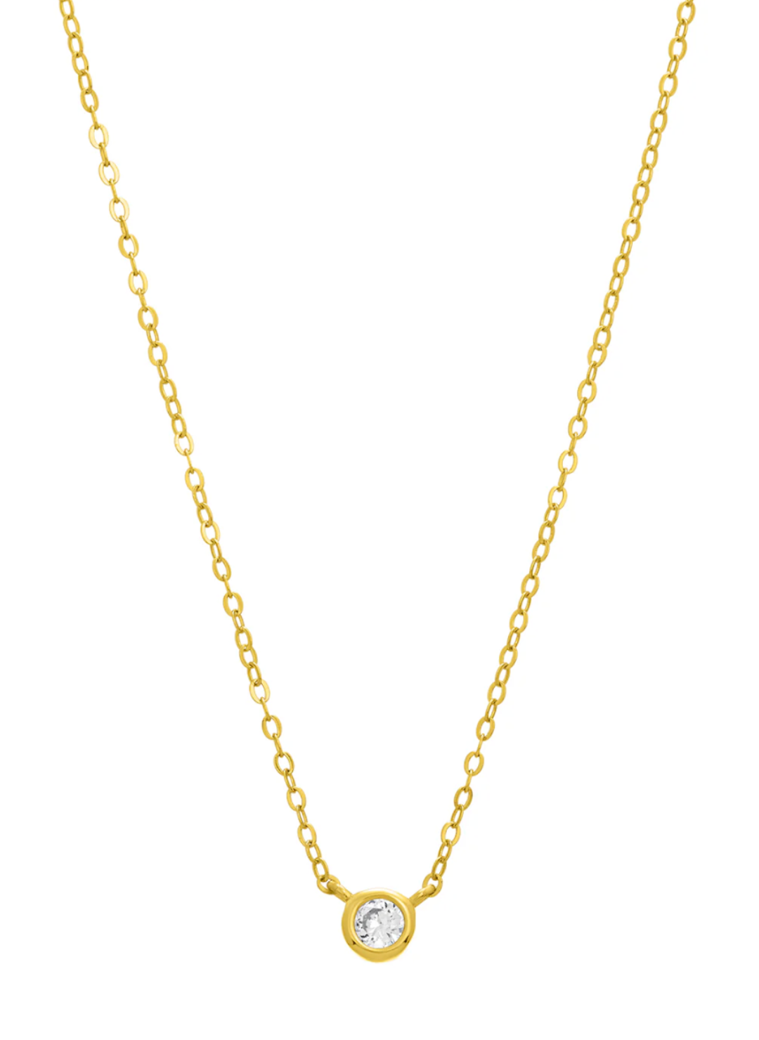 The Marisol Pendant Necklace brings a whisper of sparkle to your everyday style. Crafted with 18k gold-plated 925 sterling silver, it features a single cubic zirconia bezel pendant that glows with effortless elegance. Lightweight and versatile, this piece adds just the right amount of shimmer — whether you’re dressing up for date night or keeping it casual in your favorite tee.