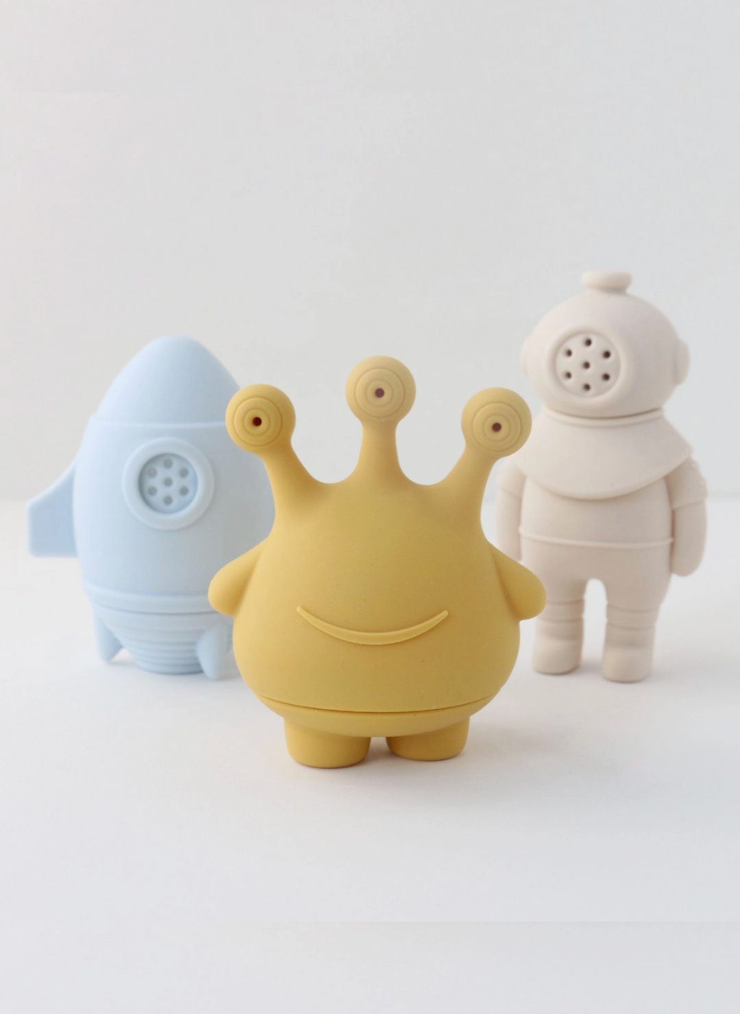 This Soft Silicone 3-Piece Baby Space Bath Set turns everyday baths into a playful, sensory-friendly experience that babies and parents both love. Featuring three adorable space-inspired characters, this set is designed to float, squirt, and entertain while supporting safe, stress-free water play.Crafted from BPA-free, food-grade silicone, these bath toys are soft to the touch, easy for little hands to grip, and safe for curious babies who love to explore with their mouths. Unlike traditional plastic bath toys, silicone helps reduce mold buildup, making these toys a cleaner, parent-approved choice for daily use.