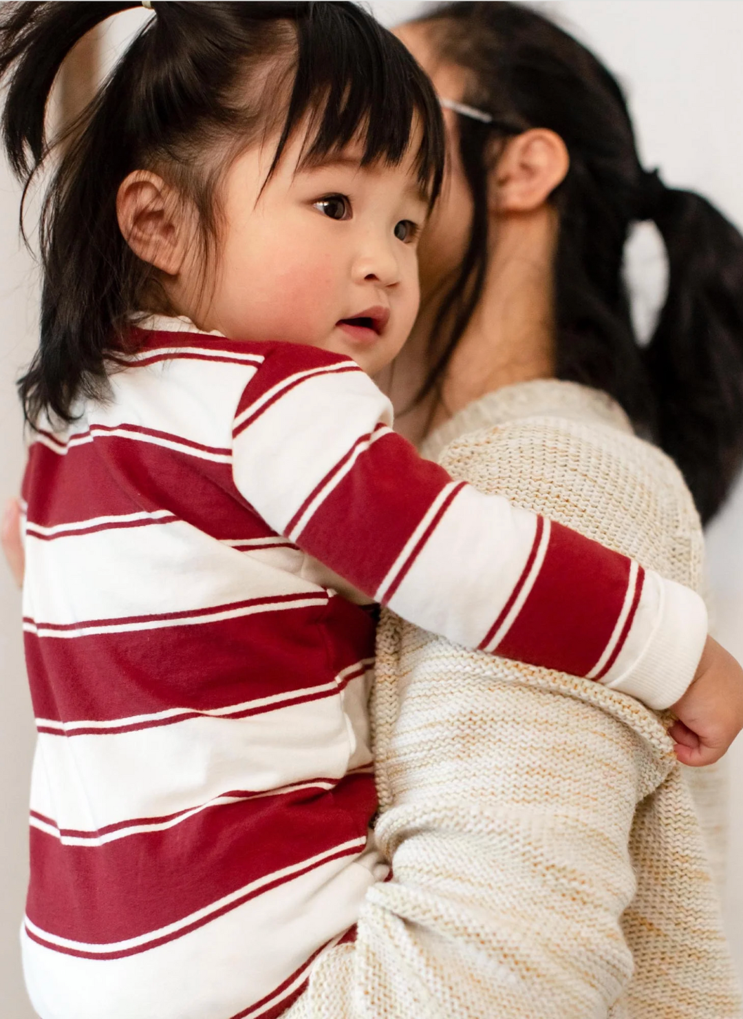 Get your little one holiday-ready in the coziest, most adorable way possible! The Burt’s Bees Organic Holiday Stripe Romper is crafted from 100% organic cotton, making it soft, breathable, and safe for delicate skin. With its rich cranberry red and cream stripes, this romper is a festive yet timeless choice for holiday photos, family gatherings, or just cozy days at home.