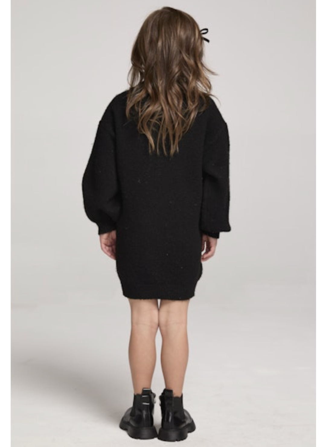 Let your little one bloom in effortless style with the Saltwater Luxe Midnight Bloom Long Sleeve Mini Dress. This cozy black knit dress is sprinkled with charming ivory floral appliqués, creating a timeless yet playful look that transitions seamlessly from school days to family outings. Designed with comfort and style in mind, this mini dress brings elevated charm to everyday wear.