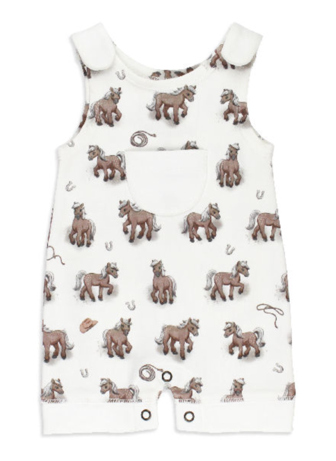 Giddy up, little one! This organic cotton romper is designed for the tiniest trailblazers who aren’t ready for the rodeo just yet but definitely have the style for it. Featuring an adorable hand-drawn pony and lasso print, this one-piece is as soft as a summer breeze on the ranch. The easy-access snaps make those quick "pit stops" a breeze, so you can get back to what matters—snuggling that sweet baby.
