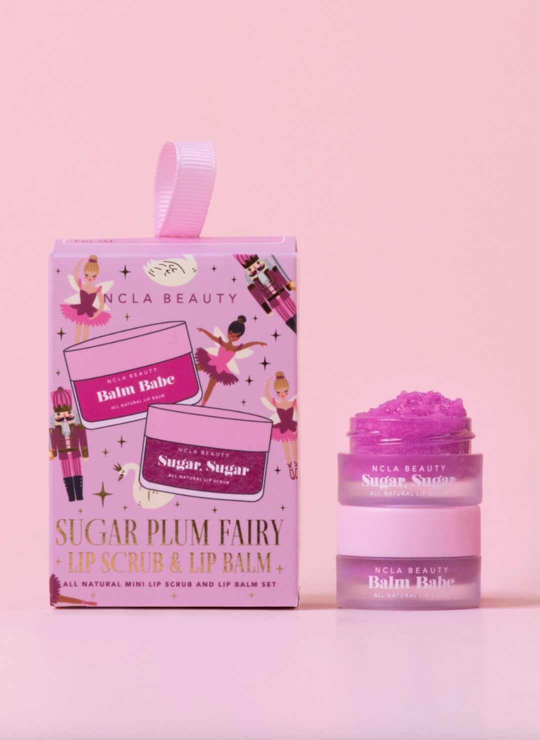 Give your holiday self-care routine a magical upgrade with the Sugar Plum Fairy Lip Treatment Duo by NCLA Beauty. This adorable ornament-style set includes a mini Sugar Sugar Lip Scrub and Balm Babe Lip Balm in a sweet, berry-plum flavor that feels straight out of The Nutcracker.