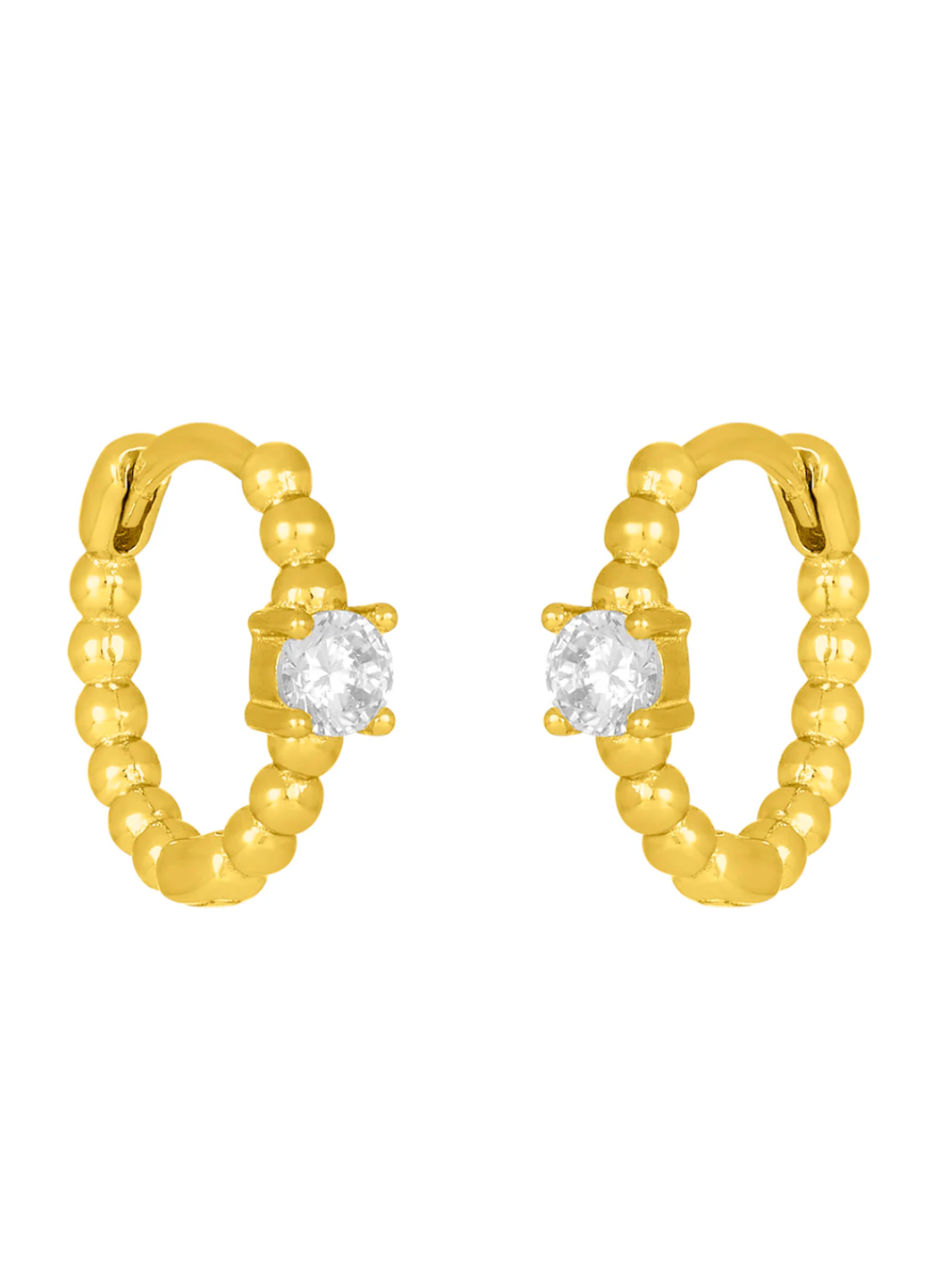 Small but mighty — the Zia Huggies bring just the right amount of sparkle to your everyday look. These delicate 18k gold-plated 925 sterling silver hoops feature a dainty cubic zirconia stone nestled in a beaded setting, creating a refined yet modern vibe.