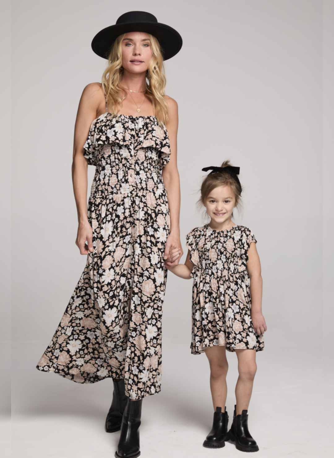 The Mirabelle Midi Dress by Saltwater Luxe is where charming elegance meets playful femininity. Crafted from 100% Rayon, this dress offers a luxuriously soft, flowing fabric that drapes beautifully and moves gracefully with every step. The stunning dark floral print in black creates a sophisticated botanical pattern that's both romantic and versatile, perfect for everything from garden parties to evening events. Featuring a flattering ruffled strapless neckline and a flowing midi-length silhouette, this dress strikes the perfect balance between elegantly playful and effortlessly chic. Whether you're attending a wedding, enjoying a weekend brunch, or celebrating a special occasion, this dress delivers statement-making style with feminine charm.