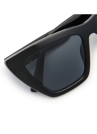 image shows the back of the sunglasses with the word “dime” in silver print on the side frames