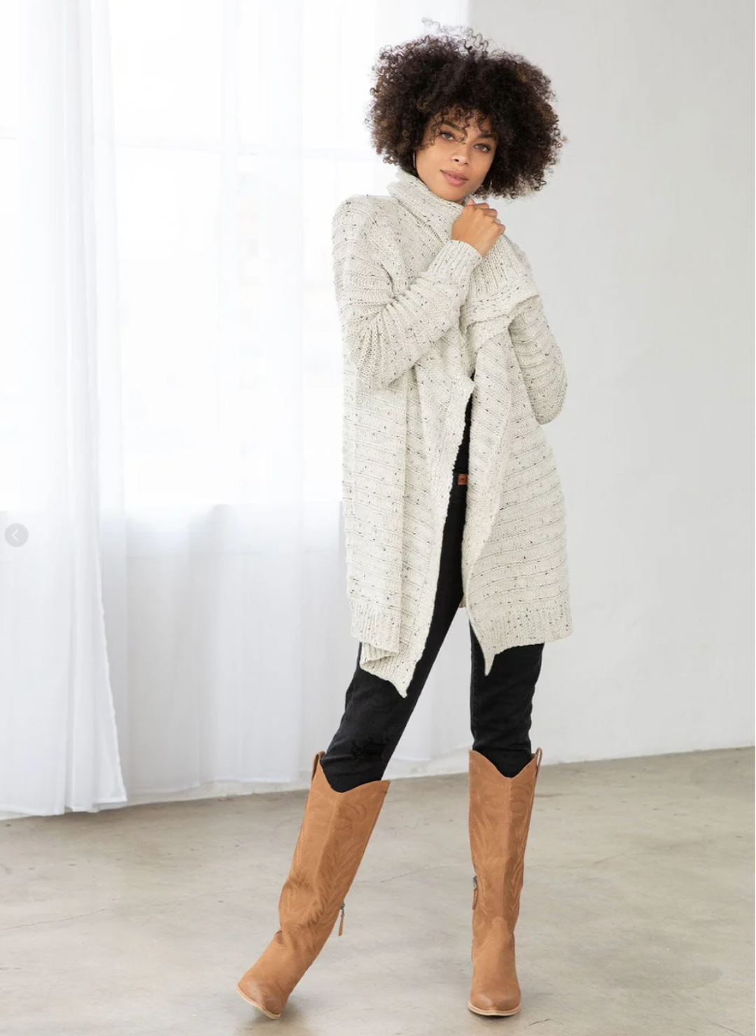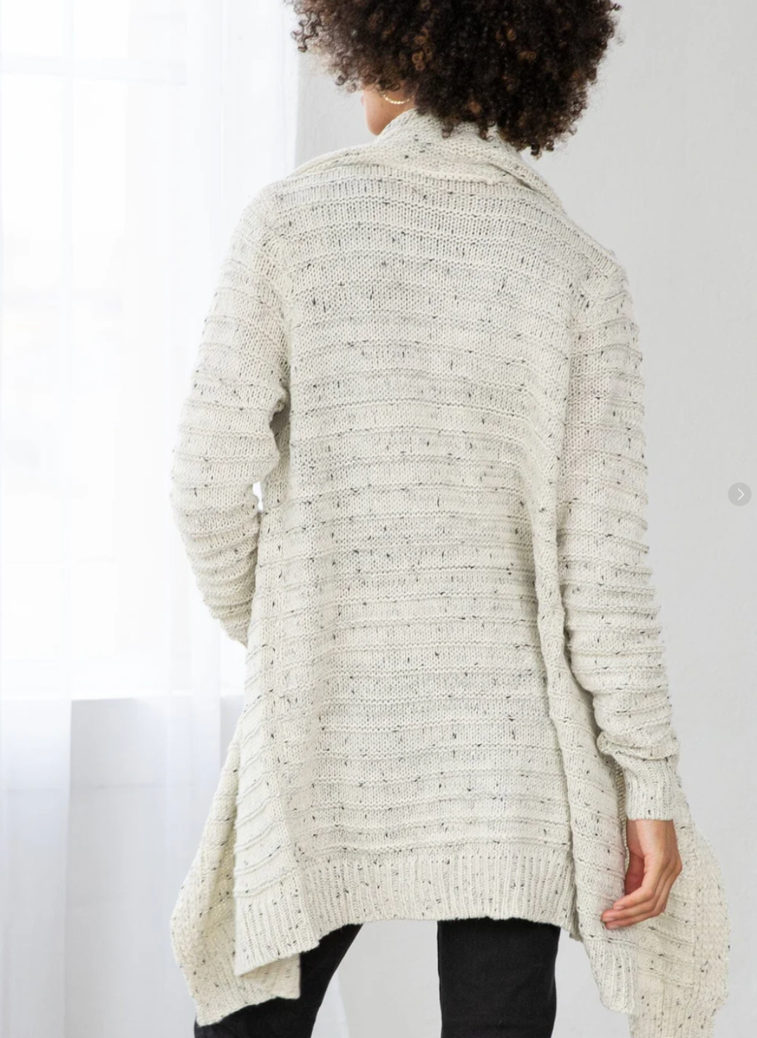 Meet your new favorite layer: the Lovestitch Oversized Lapel Knit Cardigan. Crafted from a soft, speckled knit with a beautifully draped lapel, it wraps you in comfort without compromising style. Relaxed enough for patio mornings yet polished for wine tastings or weddings, it’s the perfect in-between piece. The neutral tones pair effortlessly with closet staples, while the cozy weight makes it ideal for California’s cool evenings. Dress up denim or layer over a flowy dress for effortless, understated luxury.
