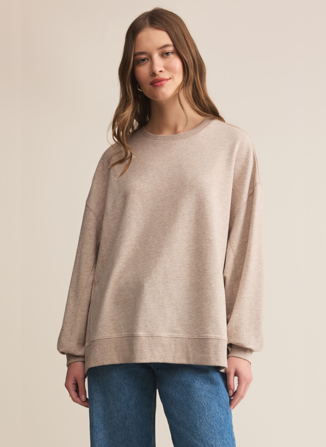The Z Supply Modern Weekender is your new favorite piece for effortless, laid-back style. Crafted from luxurious Baby French Terry in 60% Cotton and 40% Polyester, this top offers cloud-like softness with a lightweight feel that's perfect for year-round wear. The burnout wash finish creates a beautifully lived-in, vintage-inspired look that only gets better with time, while the relaxed fit ensures all-day comfort without sacrificing style. Featuring a classic crew neckline and long sleeves, this versatile piece is designed for those easy, off-duty moments when comfort is key. Finished in a warm taupe hue that pairs effortlessly with everything in your closet, this is the ultimate throw-on-and-go essential. Whether you're running weekend errands, lounging at home, or meeting friends for coffee, the Modern Weekender delivers cozy, casual-cool vibes every time.