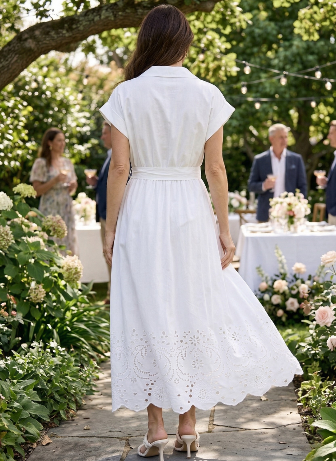 Step into a little bit of French-inspired elegance with the Versailles Dress! This 100% cotton masterpiece is the definition of "effortless chic." Whether you’re strolling through a local farmers market or heading out for a sun-drenched lunch with the girls, this crisp white midi offers a timeless silhouette that feels as light as a breeze. With its intricate eyelet embroidery detail along the hem and a classic button-down front, it’s the kind of dress that makes you feel instantly polished the moment you put it on.