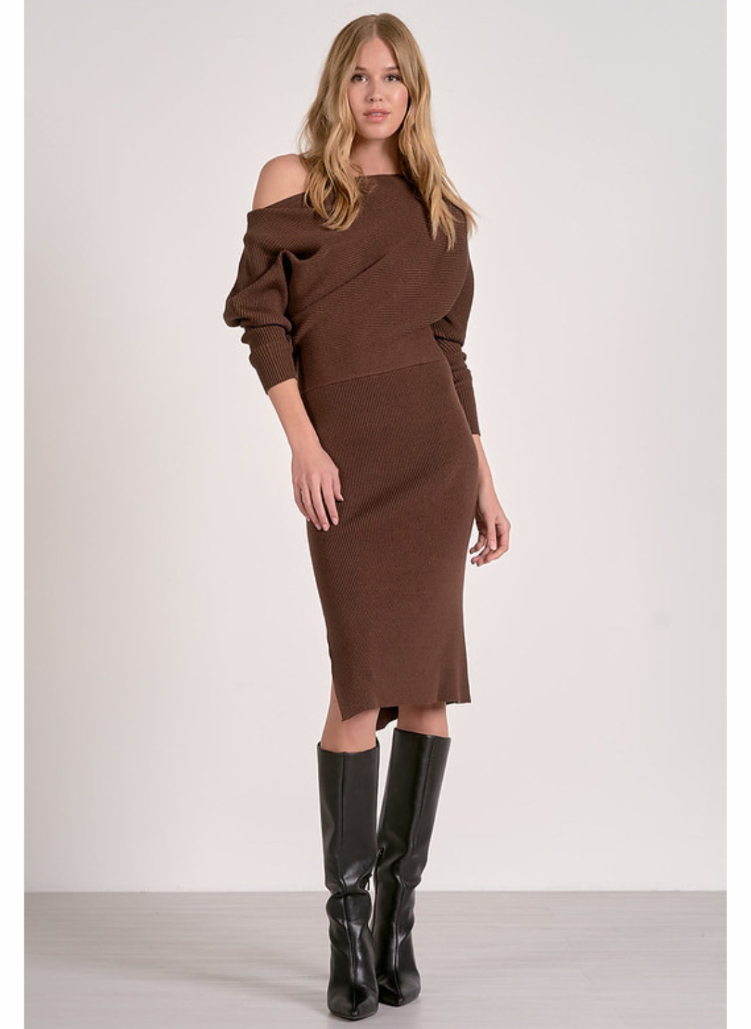 Turn heads with cozy confidence in the Elan Montana Sweater Dress — a stunning, rib-knit design that blends comfort and sophistication in all the right ways. This rich chocolate-brown midi dress drapes beautifully off one shoulder for that effortless “I didn’t try, but I nailed it” vibe. A flattering fitted waist and side slit add modern polish to this fall essential, making it your go-to for date nights, dinner parties, and chic seasonal outings.