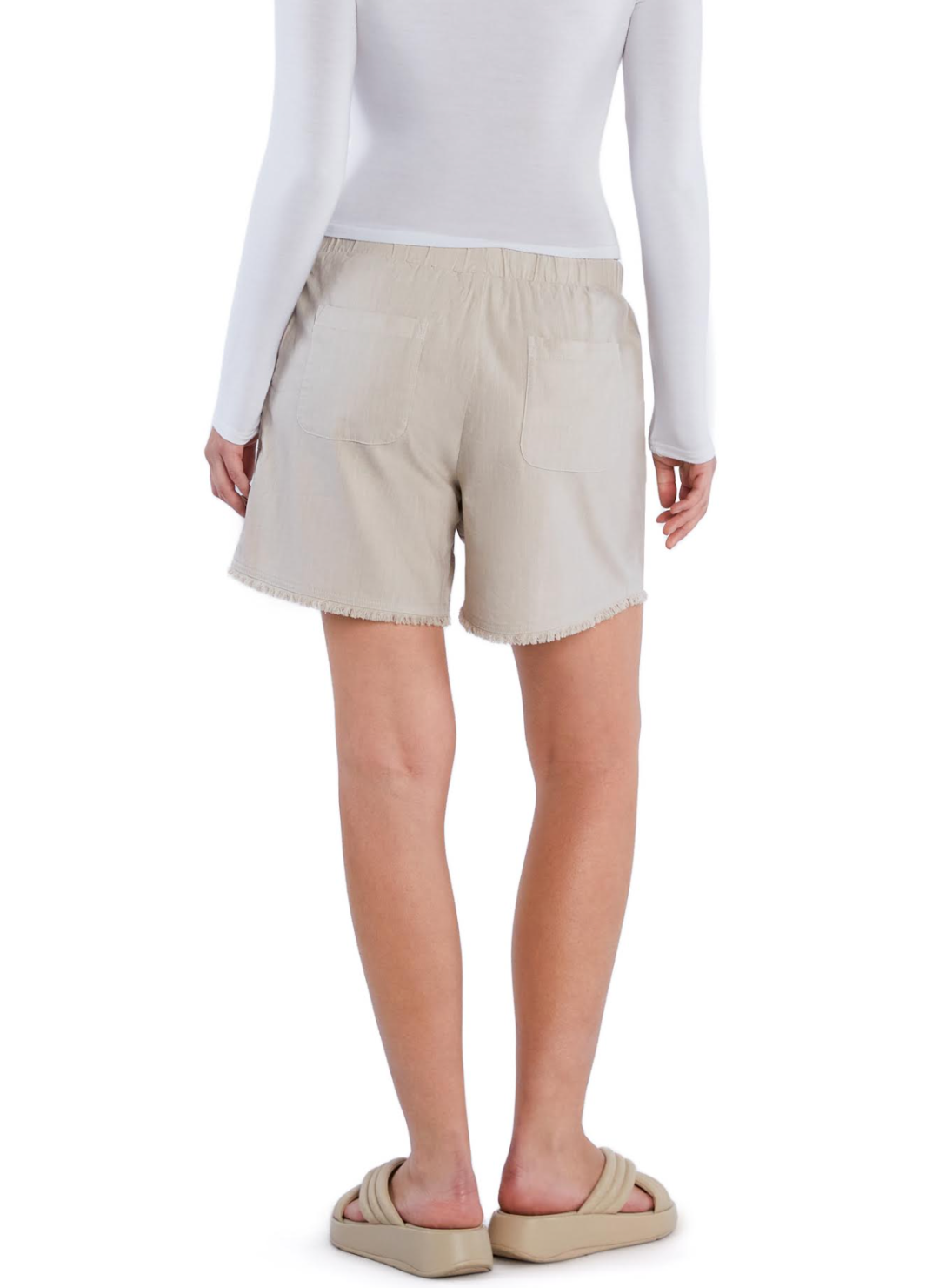Crafted from ultra-soft tencel-blend fabric with a lightweight, breathable feel, these relaxed-fit shorts feature a comfy elastic waistband with an adjustable drawstring, raw-edge hems for a modern finish, and functional front and back pockets to hold your keys, phone, or lip gloss while you’re on the go. Whether you're walking the farmer’s market, jetting off to Tahoe, or lounging on the patio, these shorts are your ride-or-die for summer style.