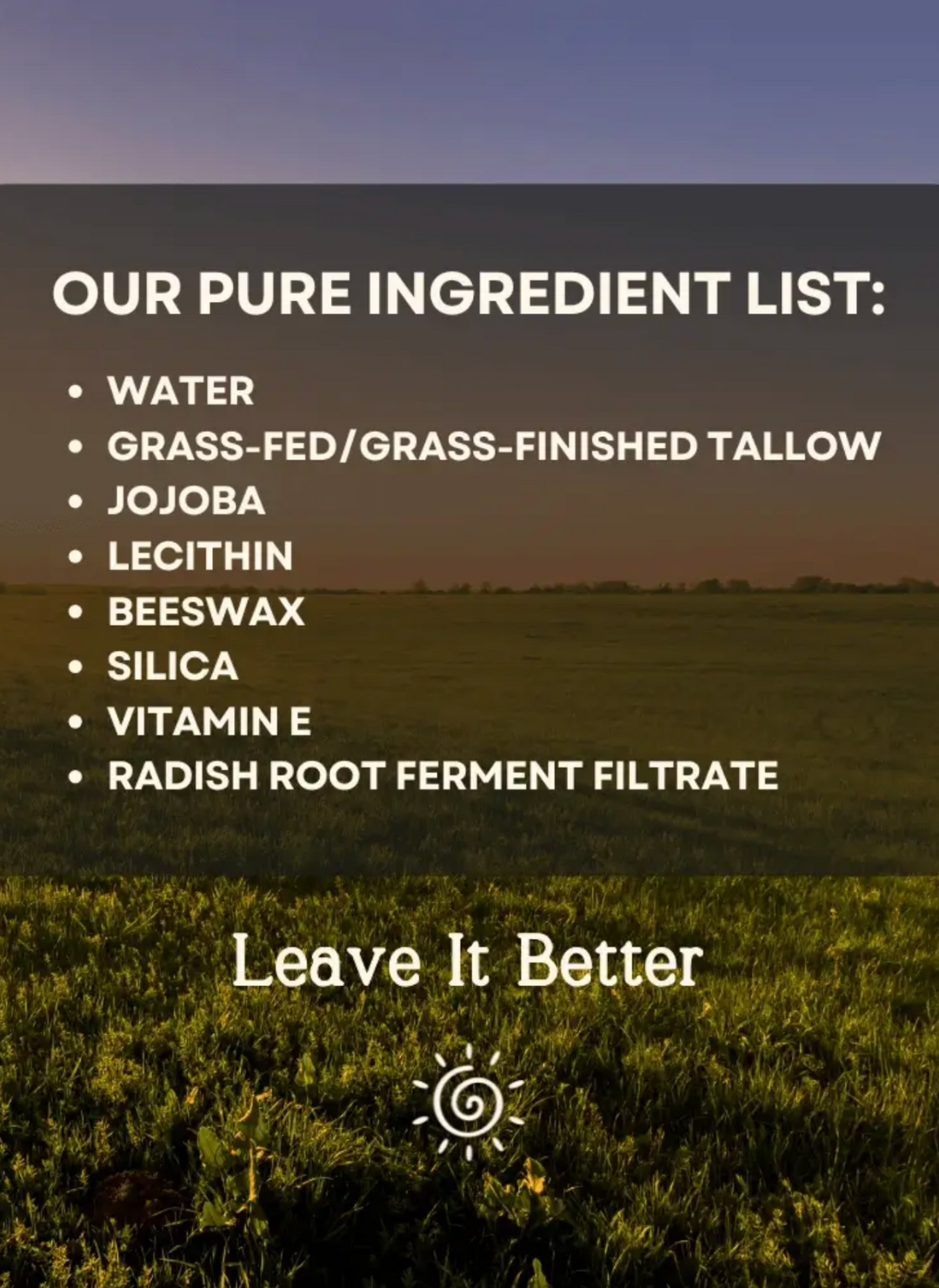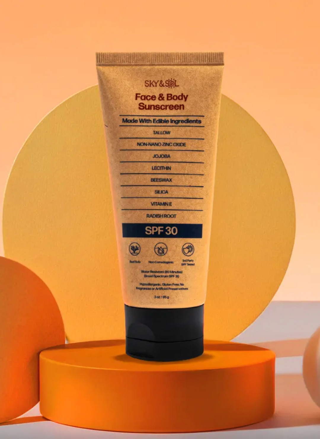 At Sky and Sol, we follow one bold rule: If it’s not safe enough to trust around your body, it has no business on your skin. That’s why we use edible, nutrient-rich ingredients—like tallow— that your body already loves.