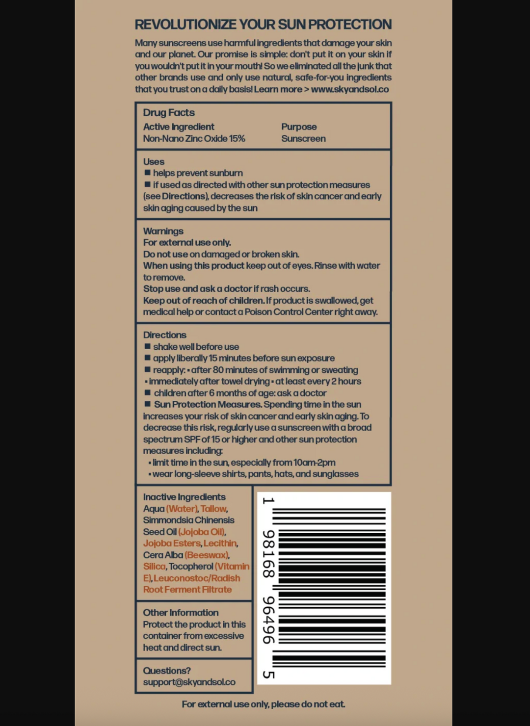 - Skin Biocompatible Tallow Sunscreen formula means no greasiness or breakouts.