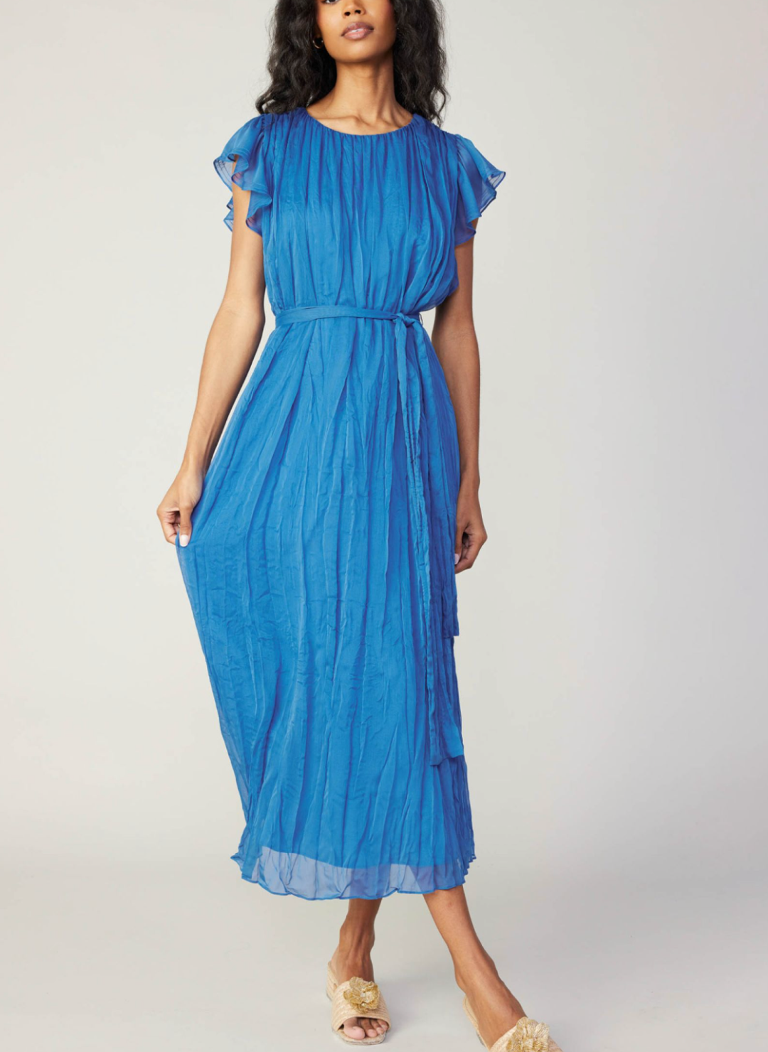 Make waves in The Catalina Crinkled Maxi—a breezy, lightweight statement piece in a stunning ocean blue. This flowy dress features flutter sleeves, a flattering, yet removable, belted waist, and a beautifully crinkled texture that moves effortlessly with every step. Perfect for sunny days, garden parties, or casual weddings, this dress blends comfort with elegance. The sheer overlay adds just the right amount of feminine charm while keeping it breathable for warmer weather. Pair it with woven heels or sandals for that easy coastal chic look your wardrobe craves. A must-have for stylish getaways or weekend outings.