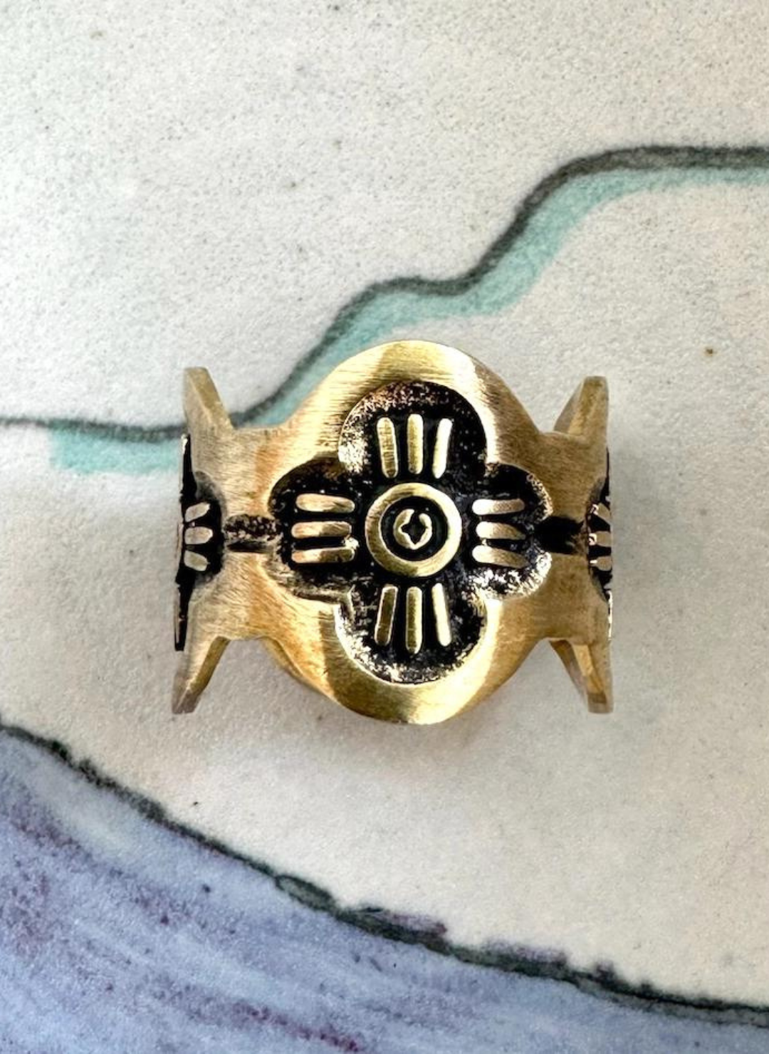 A word about brass: You can either keep your ring shiny by polishing regularly with an inexpensive polishing cloth, or you can allow the brass to patina naturally. As soon as you take the pieces out of the plastic, they will begin the patina process, which we happen to love!